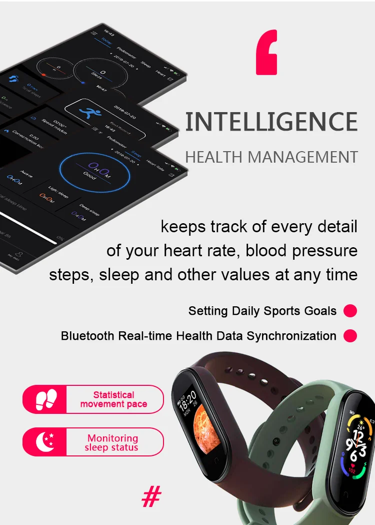 5 【Health monitor and sports monitor】 Heart Rate,Sleep Monitor,and multipe sports monitor,make your life health and help you sport every day!