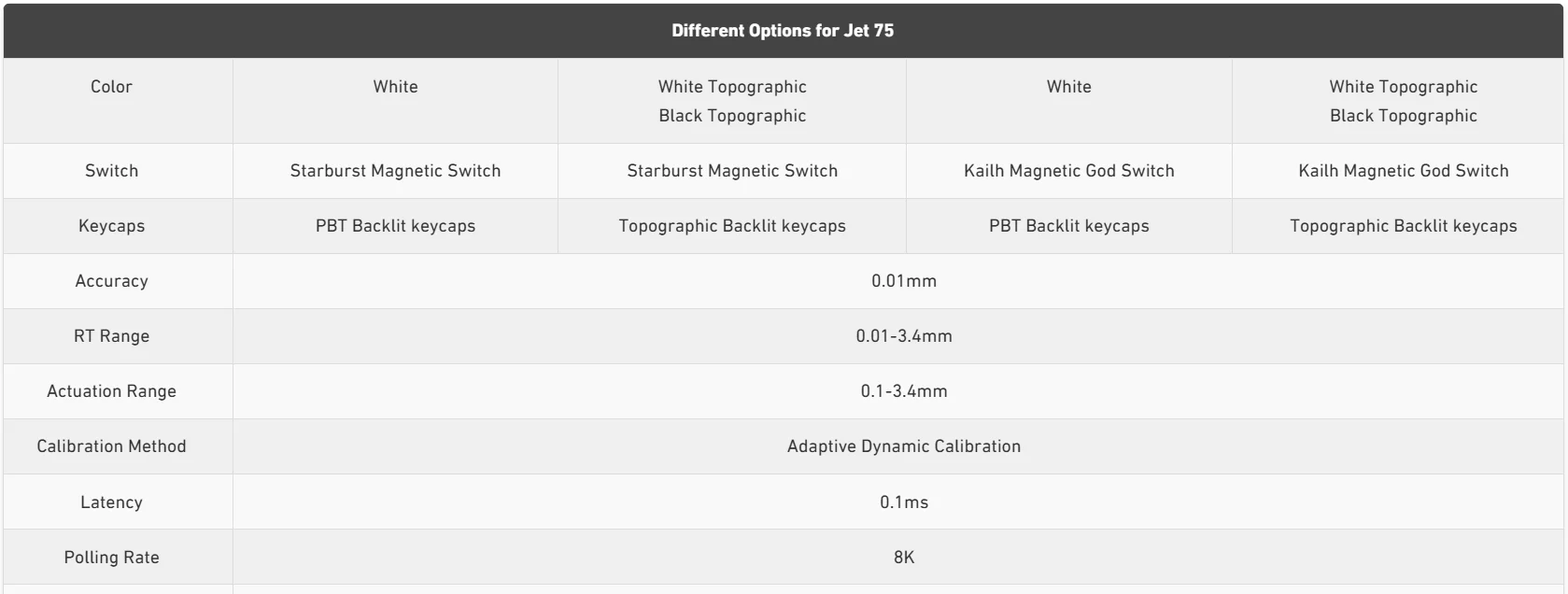 With a remarkable 0.01mm precision, the JET75 ensures every keystroke is captured with flawless responsiveness. Each press is recognized with pinpoint accuracy, ensuring that rapid combos and quick actions are executed flawlessly. It empowers you to react faster and execute with absolute control, giving you a distinct advantage in competitive gameplay.